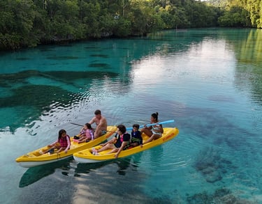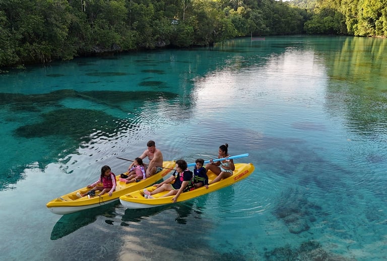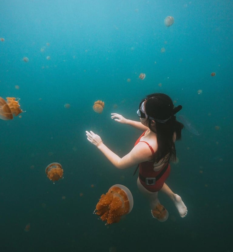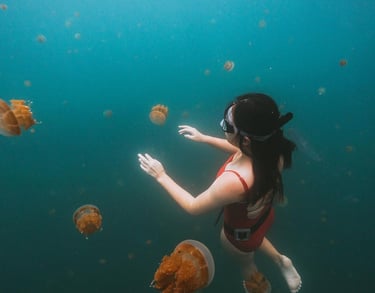 A world-renowned natural lake filled with non-stinging jellyfish drifting gently beneath the surface.