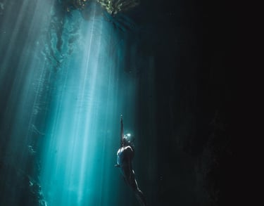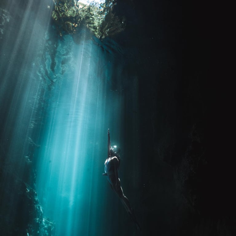Swimming here is silent and surreal — a calm, dreamlike moment surrounded by golden movement and clear water.