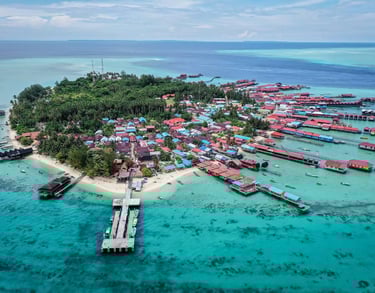 An island rich with colour and community — floating houses, soft reefs, and friendly coastal life.